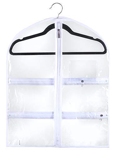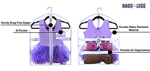 Keep costumes, dance wear, and dress clothing neatly protected and organized with clear, hanging garment bags with multiple storage pockets.
