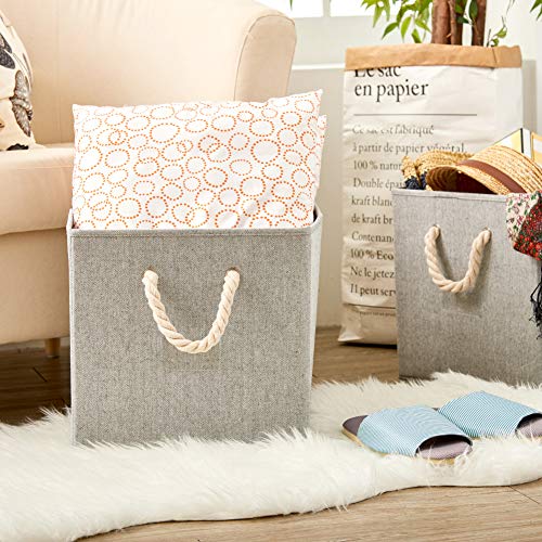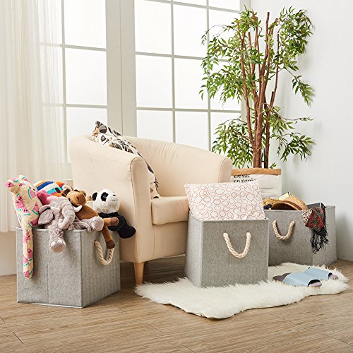 The EZOWare Set of 3 Foldable Fabric Collection Storage Bins offer a fashionable and attractive home decor option. The smooth texture of the storage box gives a simplistic natural look with soft cotton rope handle accents. Comfortable carry even with heavy loads. The bins are constructed of high density supporting cardboard for greater structural integrity to support and carry most items. The bins can be easily folded flat to take up minimal space when not in use for added convenient. Pack of 3 for added value.