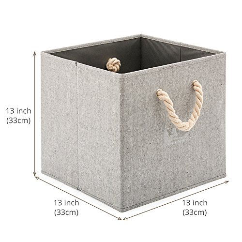 Exterior Dimensions: 13 x 13 x 13 inches (33 x 33 x 33 cm)Elegant Design: Natural Gray color perfectly blends in your home décor or office. Works great on the shelves, under coffee tables, and in dorm rooms! Easy to fold down when not in use. Comes with a card holder slot for easy labeling.
