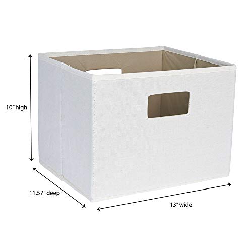 Household Essentials open storage bin is a sturdy fabric storage bin with reinforced sides and a cutout handle. This classic natural canvas bin fits with any decor and blends with any color, making it a storage and organization staple. This bin is collapsible, with a removable bottom insert that keeps the bin stable when open and lets it fold flat when removed. Household Essentials open storage bins are 10 inches high, 13 inches wide, and 11.5 inches deep. They fit perfectly on closet shelves and in Household Essentials cubbiesLarge stylish and durable storage box with cutout handles for closets and shelves