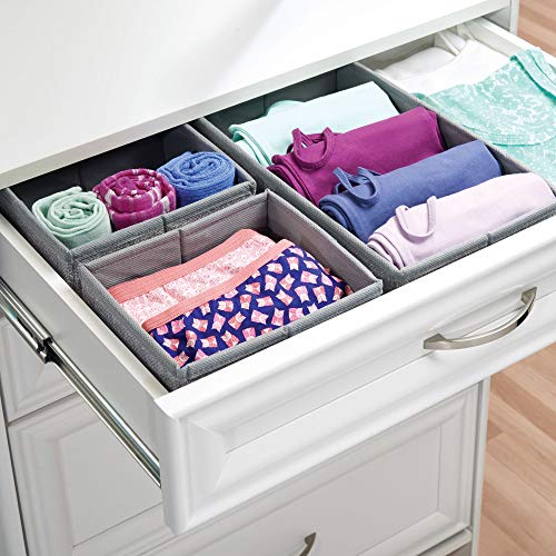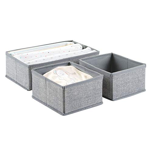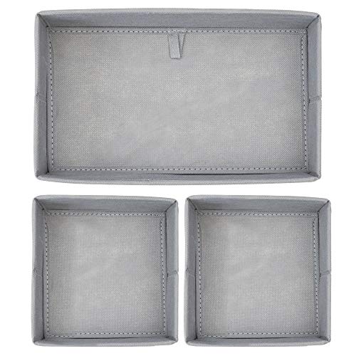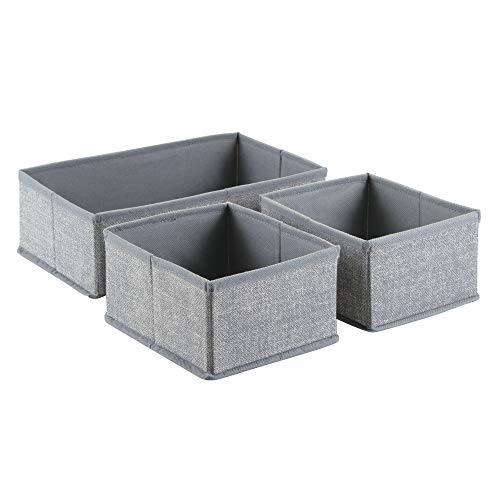 The InterDesign Aldo fabric dresser drawer organizers keep your drawers, shelves, closets, and dresser tops neat and organized. Use for underwear, baby clothes, jewelry and cosmetics, crafts or other accessories.TIDY CLOSETS: Keep clothing and accessories more visible, organized, and easily accessible.