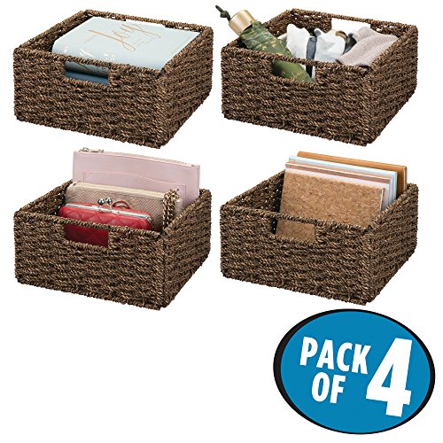 The Collapsible Woven Storage Boxes by mDesign are perfect for keeping your bedroom, entryway, and hallway closets organized and clutter-free. They offer roomy space for storing blankets, sweaters, out of season clothing, hats, swimming gear, and other necessities. Use inside storage units in the home office for organizing books, magazines, games, binders, folders, notebooks and photo albums. The open top makes it easy to see what's inside and quickly grab what you need. The built-in handles make moving on and off shelves easy in any bedroom closet, laundry area or other storage space in your home. Bins are easily collapsible for space-saving storage when not in use.PORTABLE: These storage bins have integrated handles making them easy to pull on and off of shelves or cubbies; Use together to create a large organizational set or separate the items for coordinated storage throughout the room; Bins are easily collapsible for space-saving storage when not in use; Decorative and functional, these stylish baskets are great in living rooms, family rooms, entryways and mudrooms; Great for apartments, condos, and college dorm rooms
