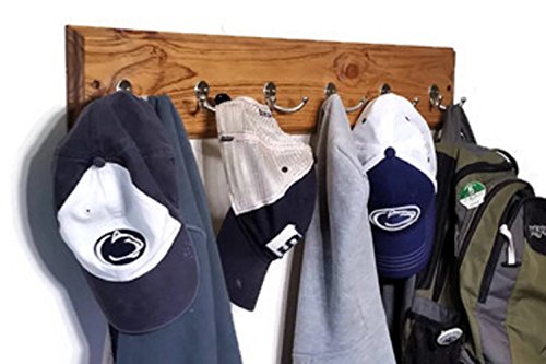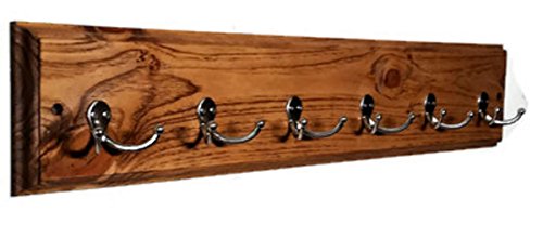 • Traditional design fits well in rustic or modern applications • 6 high strength double hooks available in 5 different finishes including Oiled Bronze, Brushed Nickel, Chrome, Brass and White • Includes mounting hardware • Select from over 20 stain finish options to fit your style • Plank: Solid Pine Wood • Hook Material: Metal • Installation Type: Wall mounted • Assembly Required: No • Size 30.5" Wide x 5.5" High • Shown in English Chestnut and Brushed Nickle Hooks