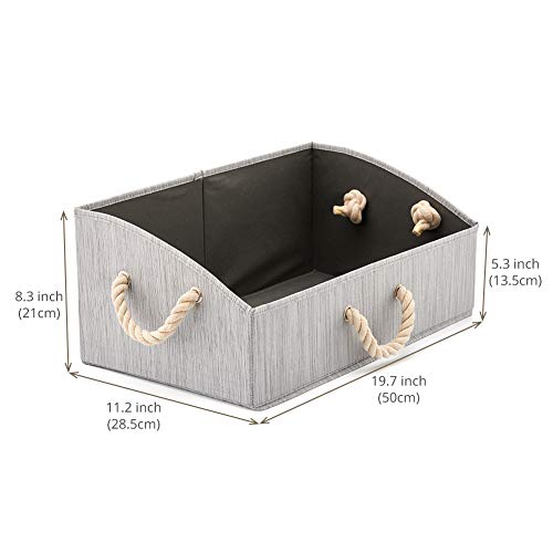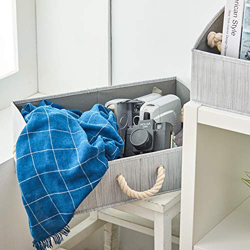 EZOWare [Set of 3] Foldable Bamboo Fabric Storage Bin with Cotton Rope Handle is made of water repellant bamboo cotton fabric that protects your accessories from stain and dirt. The soft and smooth texture of the storage box gives a simplistic natural look. The high density supporting board and thickened cotton handle allow comfortable carry even with a heavy load. The metal supporting rims also strengthen the structural integrity of the box. It can be easily folded when not in use. Pack of 3 for added value.Elegant Design: Natural beige color perfectly blends in your home décor or office. Works great on the shelves, under coffee tables, and in dorm rooms! Easy to fold down when not in use. Folded dimensions (each): 11.42 x 9.84 x 0.79 inches (29 x 25 x 2 cm).