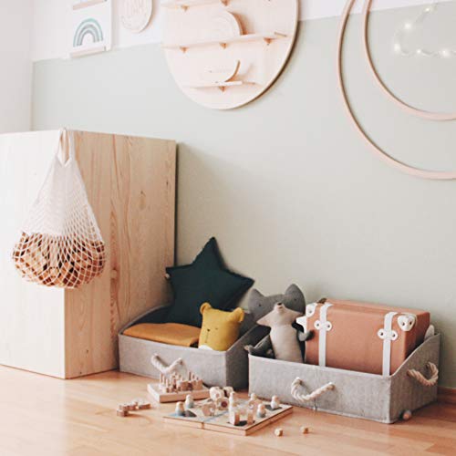 Sturdy Bins: Water resistant outer bamboo cotton fabric prevents moisture from building up. High density inner supporting MDF board for reinforced structure.