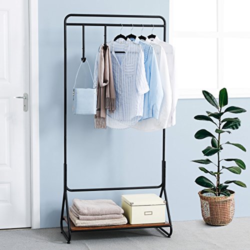 - 1 x InstructionORGANIZE YOUR LIFE: This modern design one-of-a-kind free standing clothing rack with single garment rail. Rail for hanging clothes. With a bottom shelf for bags or shoes