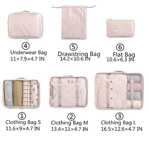 Lanivas 7 Set Travel Packing Cubes,Luggage Organizers with Shoe Bag When you are traveling on a business trip, lanivas packing cubes help to organize your luggage and provide optimum utilization of interior luggage space. They feature breathable, mesh-top panels that offer not only important ventilation, but also at-a-glance viewing for easily identifying what's inside. It allows you to easily store and organize your clothing that makes it easy to pack and even easier to unpack. Your clothes will stay more wrinkled free and not get crushed during your travels. Easy Packing Solution For Your Lovely Trip -Made of high quality water resistant nylon material -Easy to store and organize your clothes neatly -Mesh tops for breathability and visibility -Double YKK zippers make opening/closing simple and fast -Webbing handle for easy carrying or hanging -Transfer your belongings from suitcase to drawers in a snap What's in the Box? - 4 Packing Cubes - Extra Large (16.5" x 12.6" x 4.7") Large (13.4" x 11" x 4.7") Medium (12.6" x 9" x 4.7") Small (11" x 7.8" x 4.7") - 1 Toiletry Bag: 10.6" x 6.3" - 1 Laundry Bag: 15.7" x 11.8" - 1 Shoe Bag: 14.2" x 10.6" Order now and Don't Miss Out! Take advantage of our 100% Lifetime Money Back Guarantee If for any reason you're not completely satisfied, return your Packing Cubes for a No Questions Asked Full Refund.7 PIECE TRAVEL PACKING CUBES SET - 4 Clothes Storage Bag, 1 Toiletry Bag, 1 Shoe Bag and 1 Laundry Bag. Let you compartmentalize similar size items and provide optimum utilization of interior luggage space